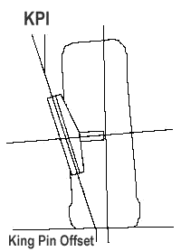 KPI: (King Pin Inclination). KPI-vinkeln anger hur mycket styrspindeln lutar inåt bilen. En inåtlutning gör bland annat att framhjulet kan rulla över en ojämnhet utan att vilja styra åt sidan eftersom styrspindellinjens skärning med marken ligger i däckets centrumlinje. |